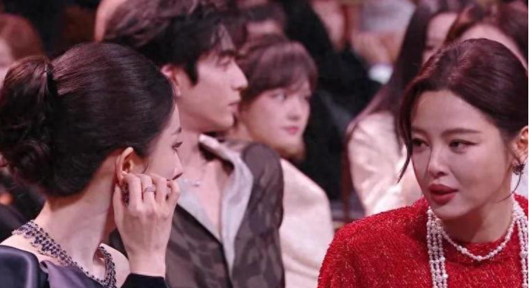 杨幂和一位男顶流明星坐在她的两边,结果开场前男明星的名牌被挪到了旁边,三个人的沙发瞬间变成了辛芷蕾和杨幂,