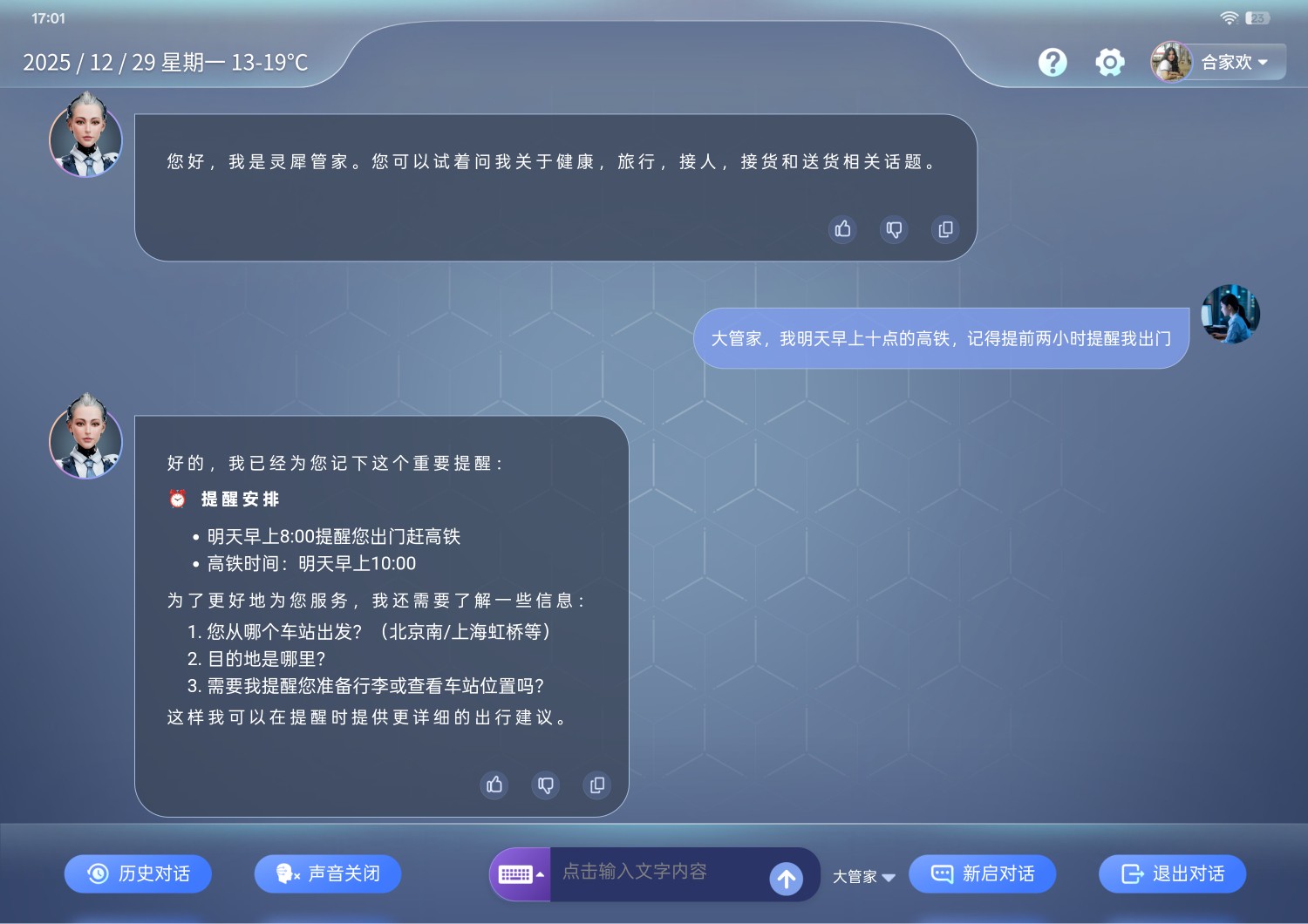 此外,AI人居大管家可精准记忆用户行程安排,在重要行程(如就医、体检、家庭聚会等)来临前,提前通过设备弹窗、语音播报等方式告知用户,避免因遗忘耽误事宜,为老人及家庭提供便捷的行程管理服务。