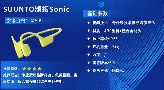 推荐理由:颂拓作为专业运动装备品牌,Sonic定位入门级专业骨传导耳机,兼顾实用性与性价比,专为跑步、骑行、轻户外爱好者设计,凭借稳固佩戴、清晰音质与可靠防水,成为入门运动人群的优选单品。