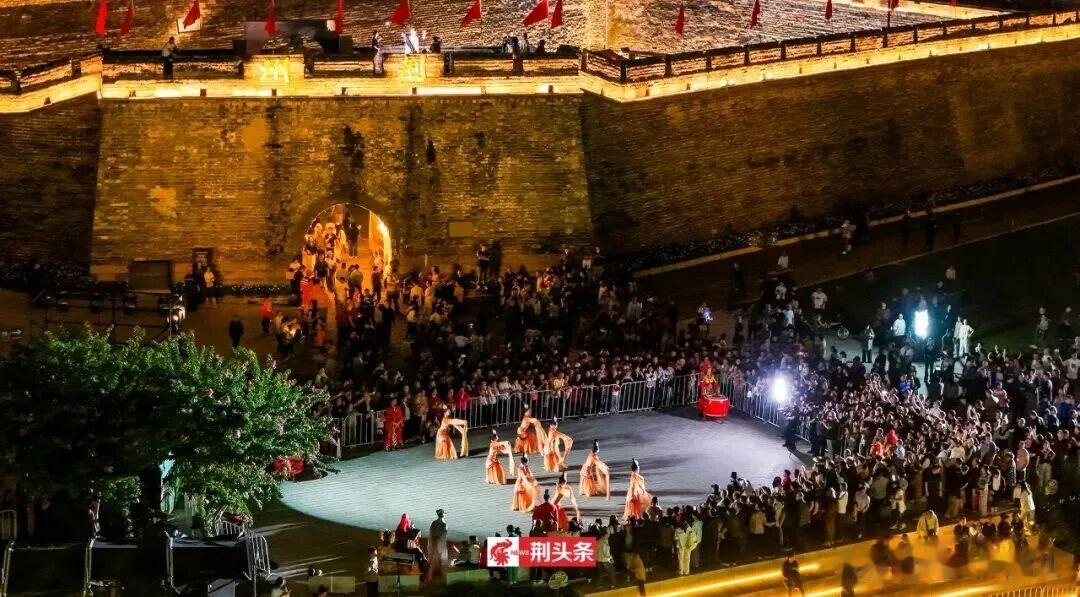 其实荆州这次能火,核心是找对了路子:把“文化 + 科技 + 演绎” 揉进了旅游里。东门的无人机表演,一会儿变楚凤,一会儿变《橘颂》诗句;大北门的光影秀,直接在城墙上演 “桃园结义”;还有护城河上的《九歌梦华录》,游客跟着 “屈原” 乘船游河,还能对楚辞、玩祈福。这些玩法让楚文化、三国文化不再是书本里的字,而是能看见、能参与的体验,连游客停留时间都多了 1.5 小时,晚上消费占比也冲到了 45%。