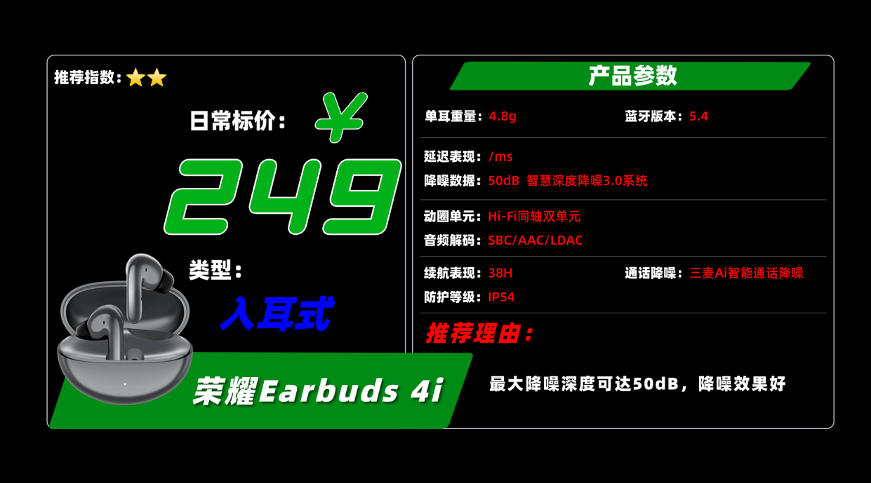9、荣 耀E arbuds 4i 蓝牙耳机