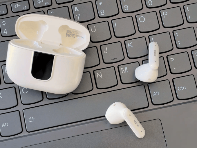 亮点1:这款耳机采用了圆润的半入耳柄式设计,外观上没有太多花哨的装饰,但整体做工扎实。充电仓体积偏大一些,不过表面磨砂质感细腻,握在手里不打滑。耳机单边重量控制合理,佩戴时几乎没有明显压迫感,长时间听歌或通勤都比较舒适。耳塞为椭圆形硅胶结构,贴合度良好,即便在慢跑或健身时也能保持稳定。它还具备IPX5级防水,能轻松应对汗水与小雨天气。