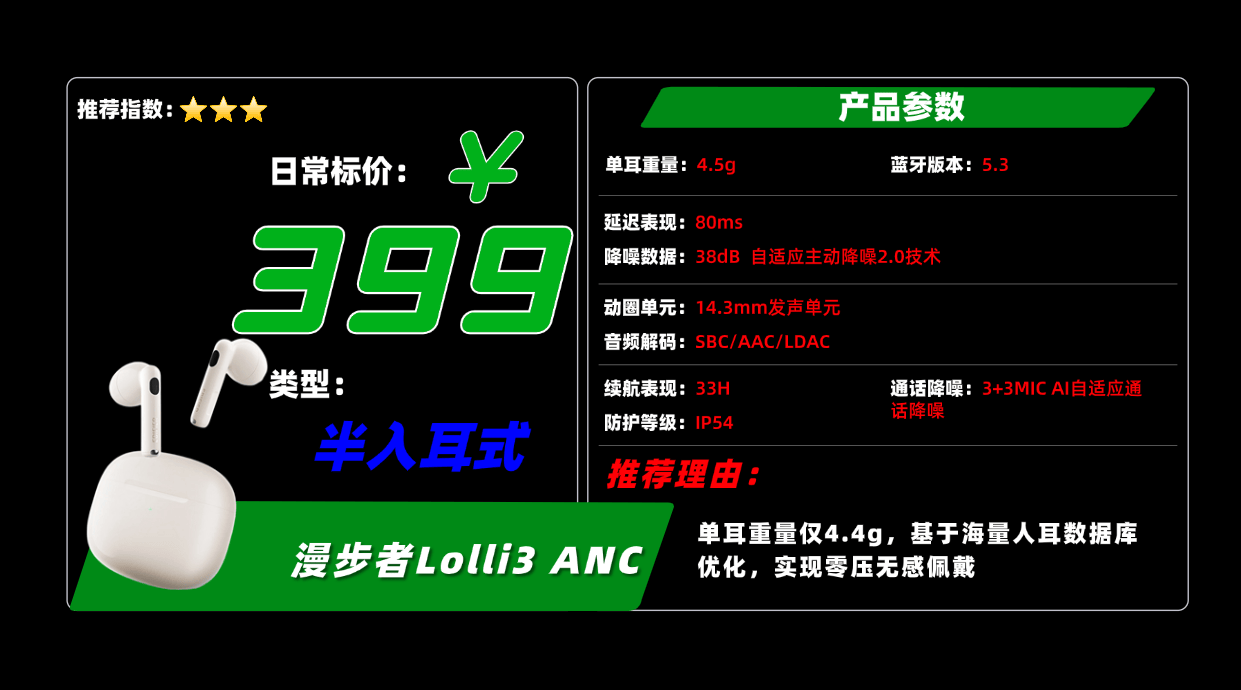 6、漫 步者L olli3 ANC蓝牙耳机