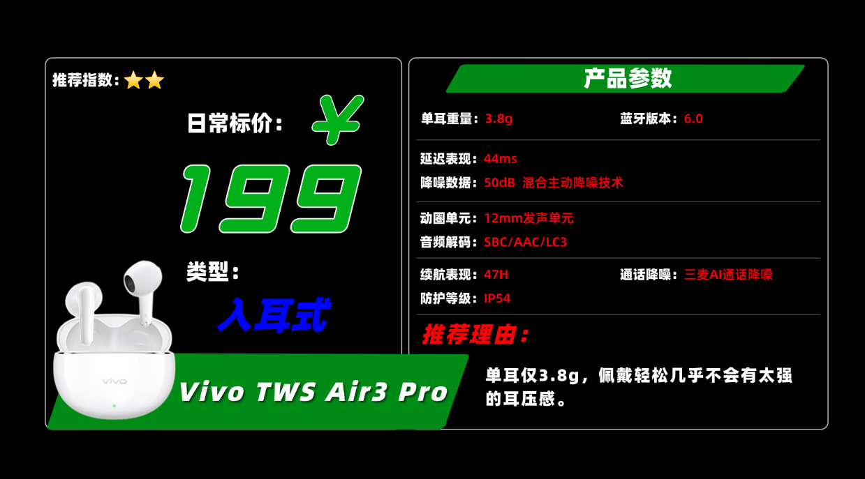 5、V ivo T WS Air3 Pro蓝牙耳机