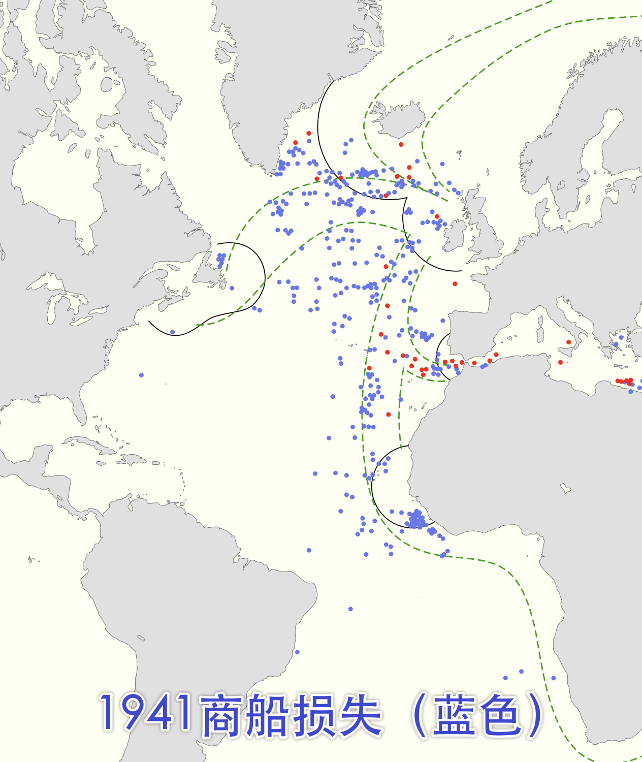 1942年是最黑暗的一年。德国潜艇疯狂袭击从北美开往英国的运输船队,那些船上装着英国人急需的粮食和燃料,整个二战期间,德国U型潜艇击沉了大概2700艘盟军船只,英国差点被饿死。