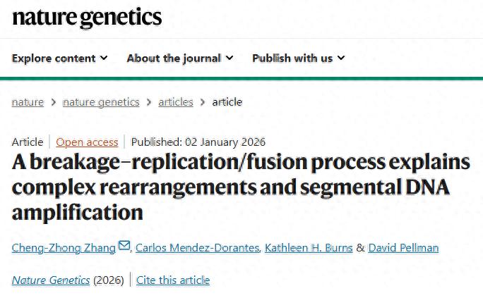 1月2日,《Nature Genetics》的研究报道“A breakage–replication/fusion process explains complex rearrangements and segmental DNA amplification”,研究人员提出的“断裂-复制/融合”新机制,如同一把万能钥匙,优雅地解开了困扰已久的基因组谜题。