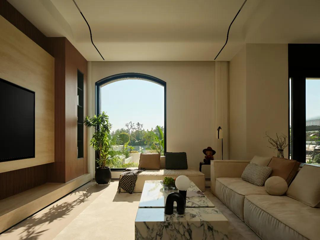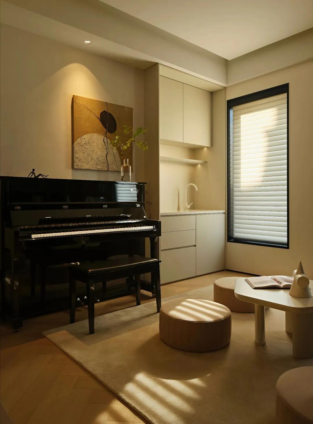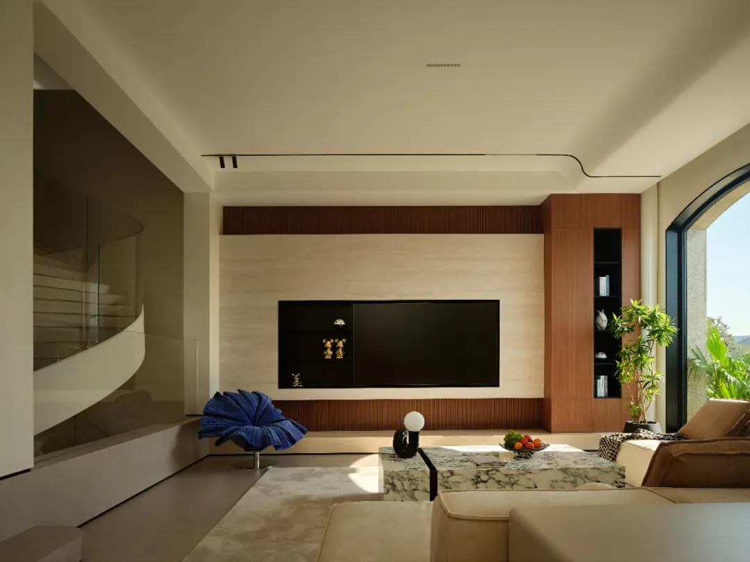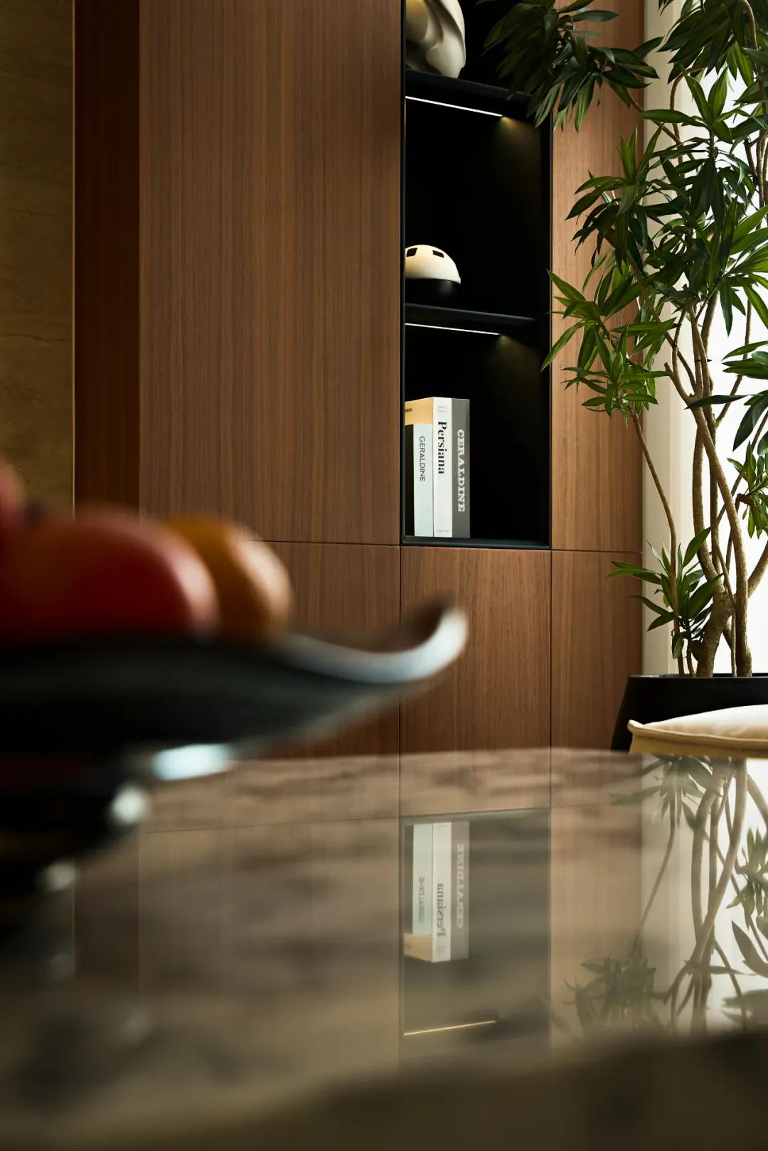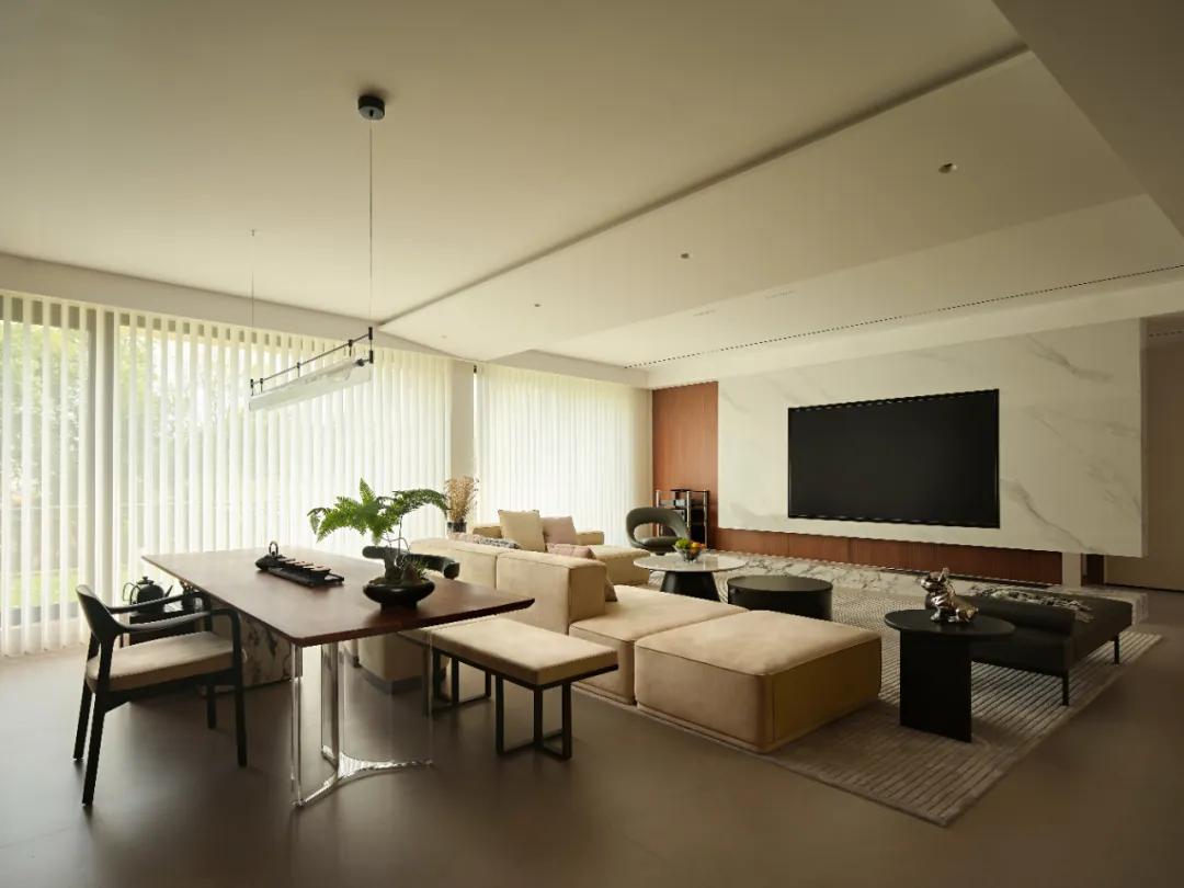 设计遵循居者生活需求,对空间进行科学规划。整体以米白、深棕、大理石灰为基调,运用石材、实木与金属等材质构建层次,从而营造出一种精致且克制的氛围,最终使家成为能够安放身心、促进情感联结的容器。