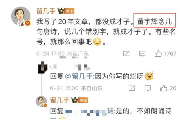 留几手毫不避讳的表示,他写了20年的文章都没有成才子,可董宇辉随便念几句唐诗,说几个错别字就成才子了。