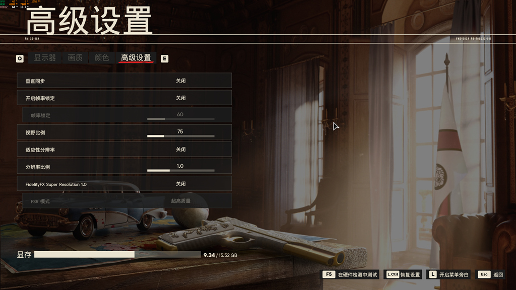 4K分辨率,极高画质,关闭FSR,平均FPS,107。