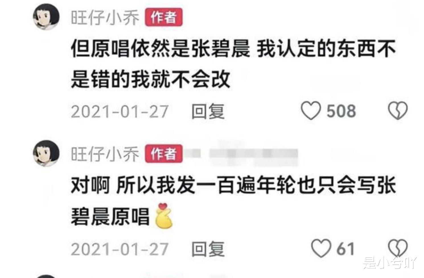 其实不太懂张碧晨的公关团队和工作室都在干嘛,原本这件事扯上她和汪苏泷就是无妄之灾。网友搁那里扒旺仔小乔黑料呢,扒出她说《年轮》这首歌原唱是张碧晨的事情,然后网友的愿意是让大众认可这首歌是双原唱的事情,借此说明旺仔小乔言行不检,发言不当,没有尊重汪苏泷版权人身份。