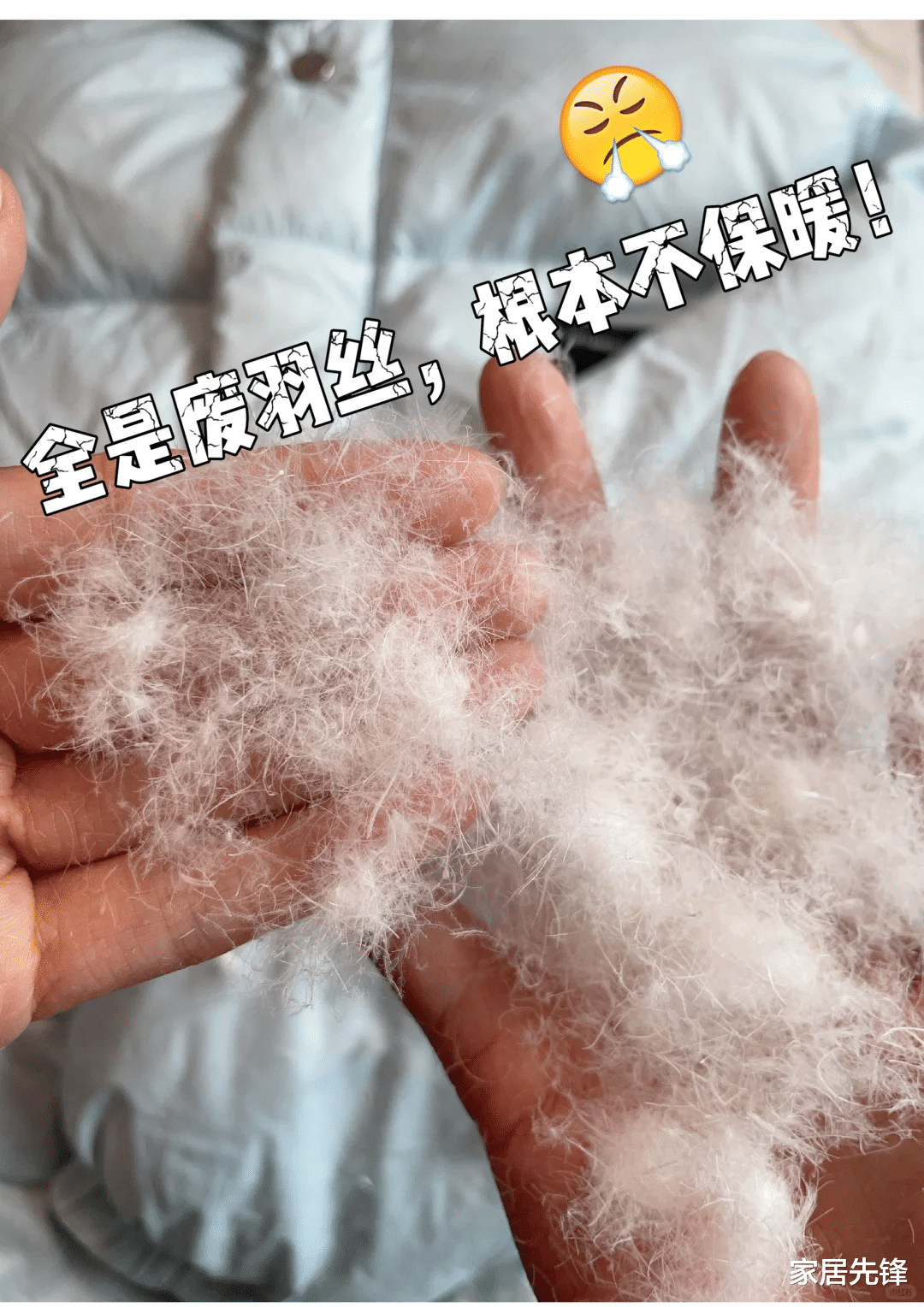 最关键的是,这样的羽绒服穿在身上也不暖和,零下5度的天也冻的我直打哆嗦。后来,将衣服拆开以后,我才发现,里面其实并不是真正的羽绒,而是所谓的飞丝。
