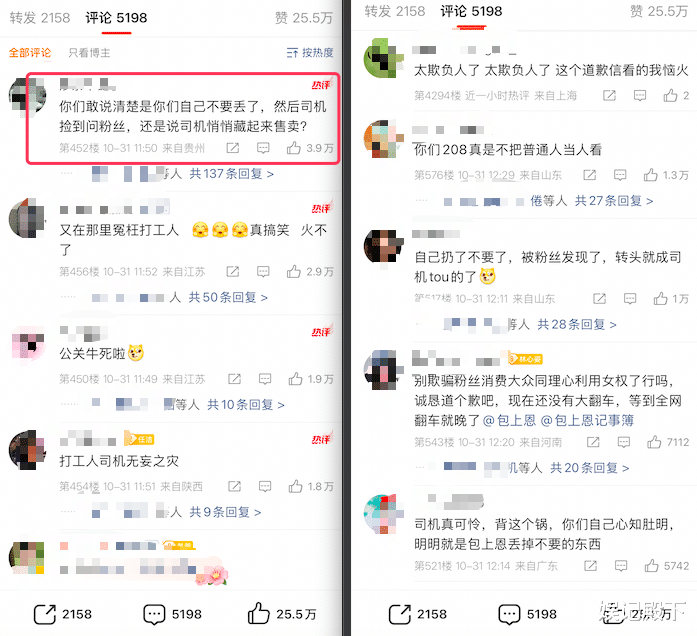 大家的意思大致就是不要冤枉打工人,口罩袜子被说成贴身衣物有些夸大其辞,东西到底是你们不要的还是司机偷的,敢不敢说清楚等等。