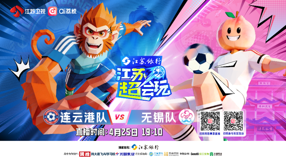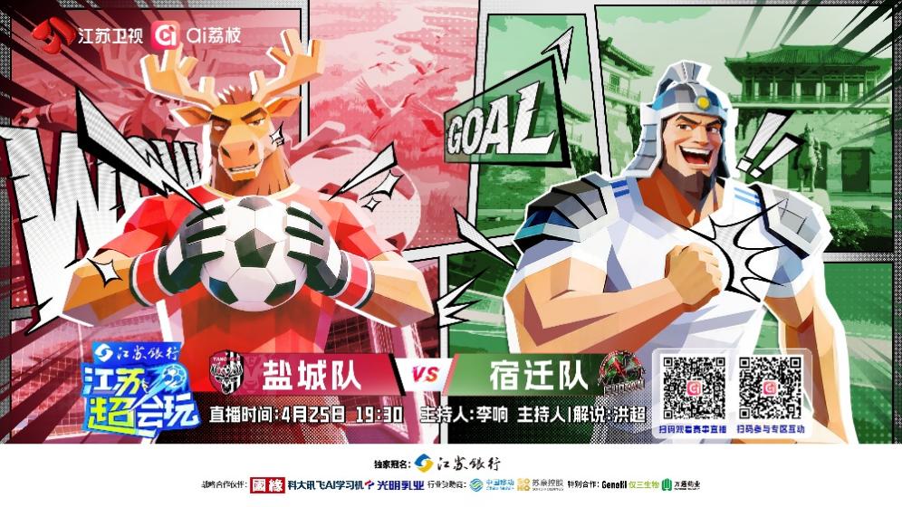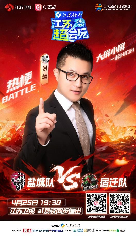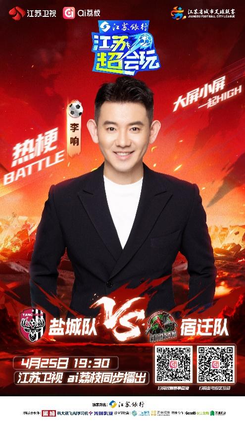 今晚19:30,由江苏卫视、ai荔枝联动打造的《江苏超会玩》,将现场直播盐城队与宿迁队的“苏北德比”,同时小屏直播连云港队VS无锡队、南通队VS徐州队的两场比赛。江苏卫视主持人李响将与老搭档洪超一道坐镇直播间,与大家一起看球、侃球,尽享“苏超”的精彩无限。