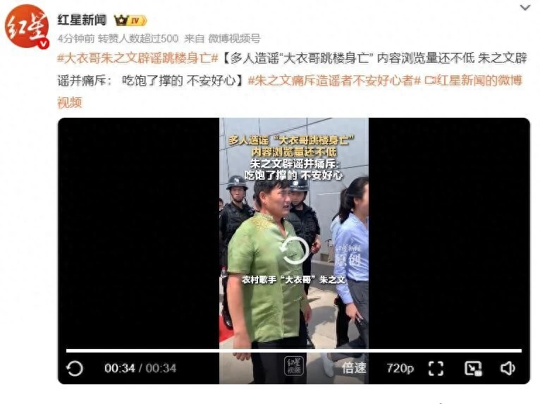 而这场离谱的造谣闹剧,始于12月13日凌晨。多个匿名账号同步发布“大衣哥朱之文跳楼身亡”的虚假视频,画面用AI换脸技术拼接了朱之文的头像,配上悲伤哀乐和模糊“现场”画面,甚至煞有介事标注“老家已搭灵堂”,以假乱真程度让不少网友信以为真。
