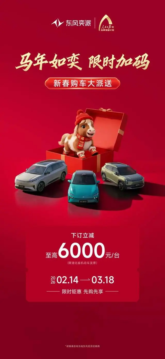 开门红,福利送!马年伊始,东风奕派便为广大消费者送上了一份“开年大礼”,推出以“马年如奕 限时加码”为主题的限时购车政策,旨为大家带来“马上省钱、马上用车、马上享福”的高价值新年出行体验!