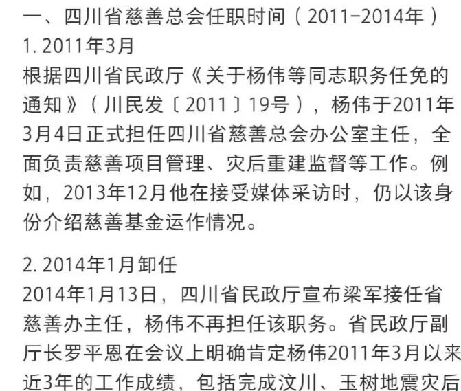 真是绝了,2013年雅安地震那时候,四川省慈善总会办公室的主任也叫杨伟。这下可好,网友们直接脑补出了一部《如何靠国难发财的108招》。不过后来真相大白,原来他们是两个不同的人,但那时候吃瓜群众已经停不下来。毕竟这些年,咱们见得多了,救灾款被私吞的事情,大家敏感点也是理所当然的。