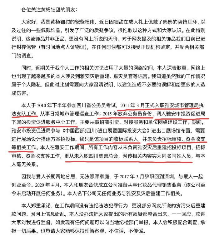 网上乱七八糟的言论一大堆,有人扯杨家贪了几亿,有人吹黄杨钿甜是靠家里关系混进娱乐圈的,越传越离谱。可这些消息多半没过硬证据,纯粹是看图乱猜。就拿那对耳环来说,有人说是限量版,值个几十万,有人说是高仿货,几千块就搞定。