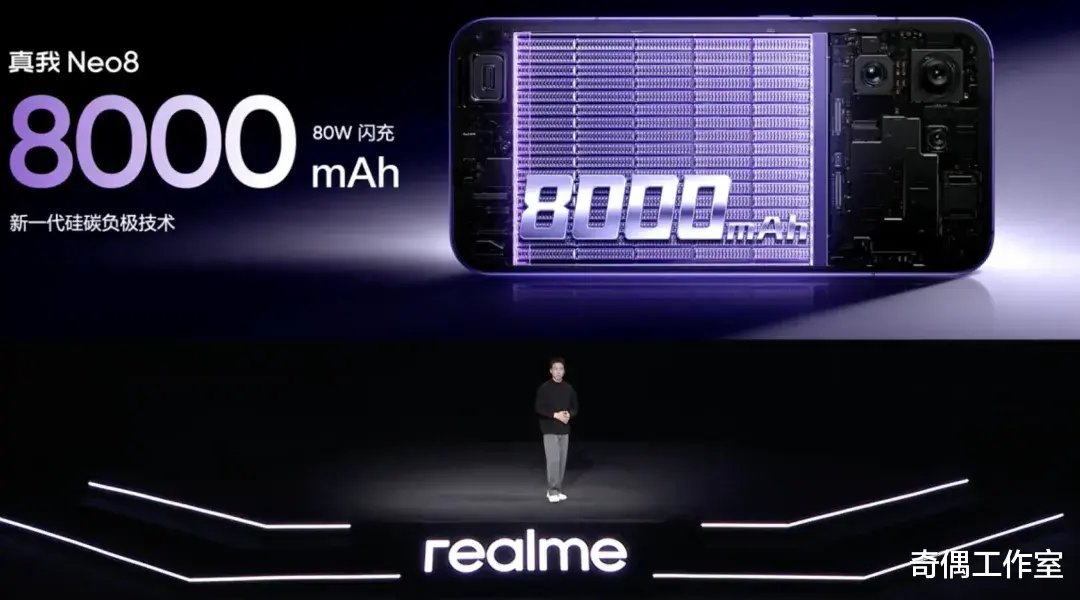 真我将电池容量做到了8000mAh,而行业单层电池标杆通常只能做到7000mAh。