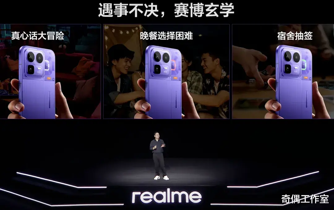 真我Neo8,透明机身泛起RGB光晕,自研的“觉醒光环”交互灯效,其背板通过“透明立体分区工艺”雕刻了11种纹理,在0.1毫米的空间内实现了精密的机械感和立体光影效果。