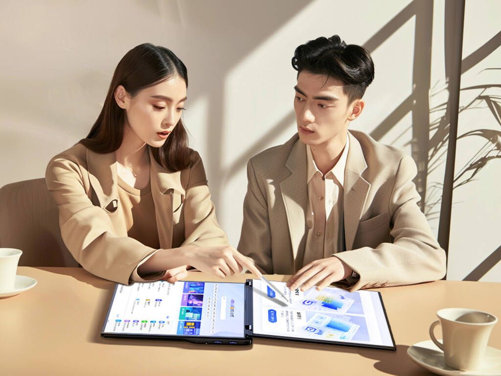 上下屏既可同时展示不同窗口,轻松实现多任务并行,也可360°翻转,变身阅读模式、平板模式或分享模式,满足更多创意玩法。上屏可作演示,下屏放置聊天窗口或参考资料,不用频繁切换页面,让办公效率倍增。
