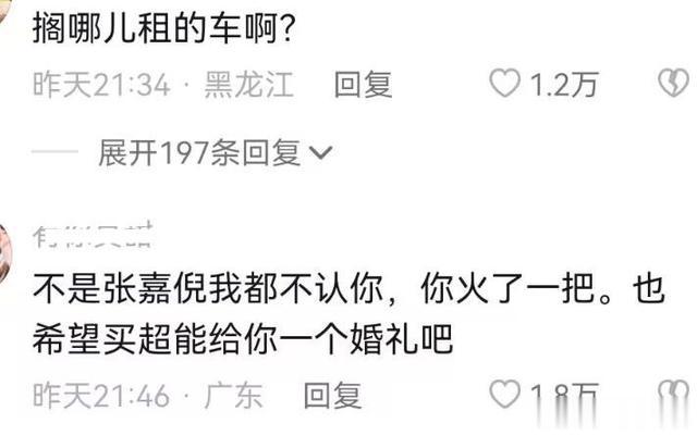 有网友调侃,这车是在哪里租的呢?如果不是张嘉倪,还真不认识了,这次算是火了一把!