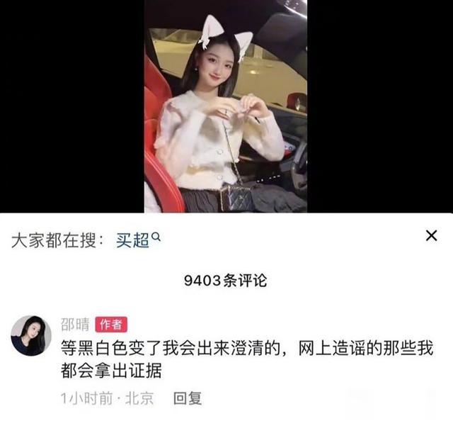 邵晴突然在评论区发话,等黑白色变了,我会出来澄清,网上造谣我的人,我会拿出证据。不知道是不是攻击她的人太多,这条评论很快就被邵晴给删除了。