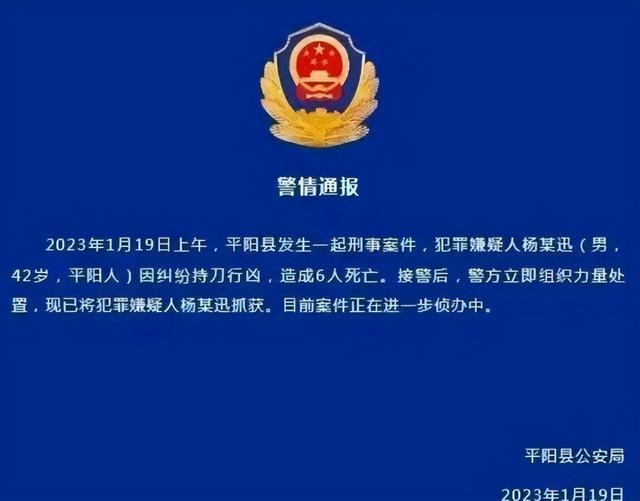 警方在第一时间进行通报,杨功讯也在第一时间被抓获,案件在进一步侦查。