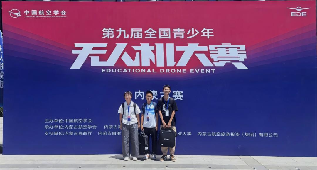 在第九届全国青少年无人机大赛内蒙古自治区选拔赛中,面对更强劲的对手与更复杂的赛制,金原兆同学凭借稳定发挥夺得省级一等奖,张沁雅、袁梓豪同学分获省级三等奖。这一成绩为学校赢得了晋级全国总决赛的入场券。