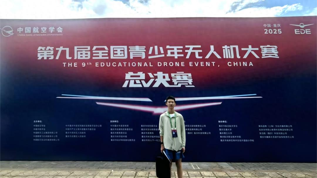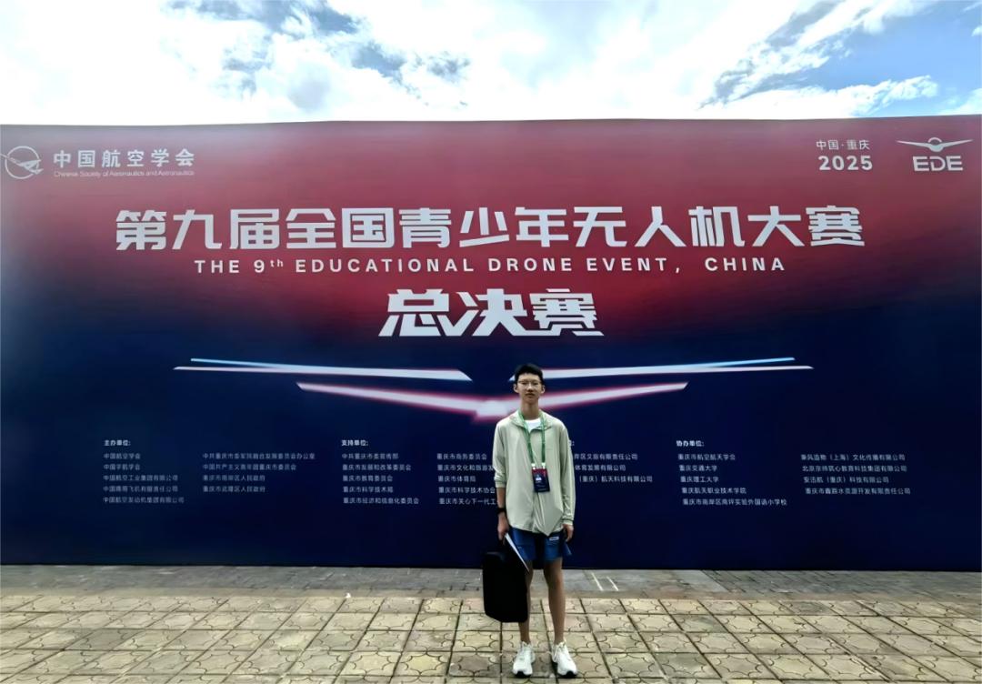 作为社团成立以来参与的最高级别赛事,全国青少年无人机大赛总决赛汇聚了全国各地的高手。金原兆同学毫不怯场,从设备调试到临场操控均展现出专业与冷静,最终斩获全国三等奖,为我校无人机社团写下了最具分量的一笔成绩