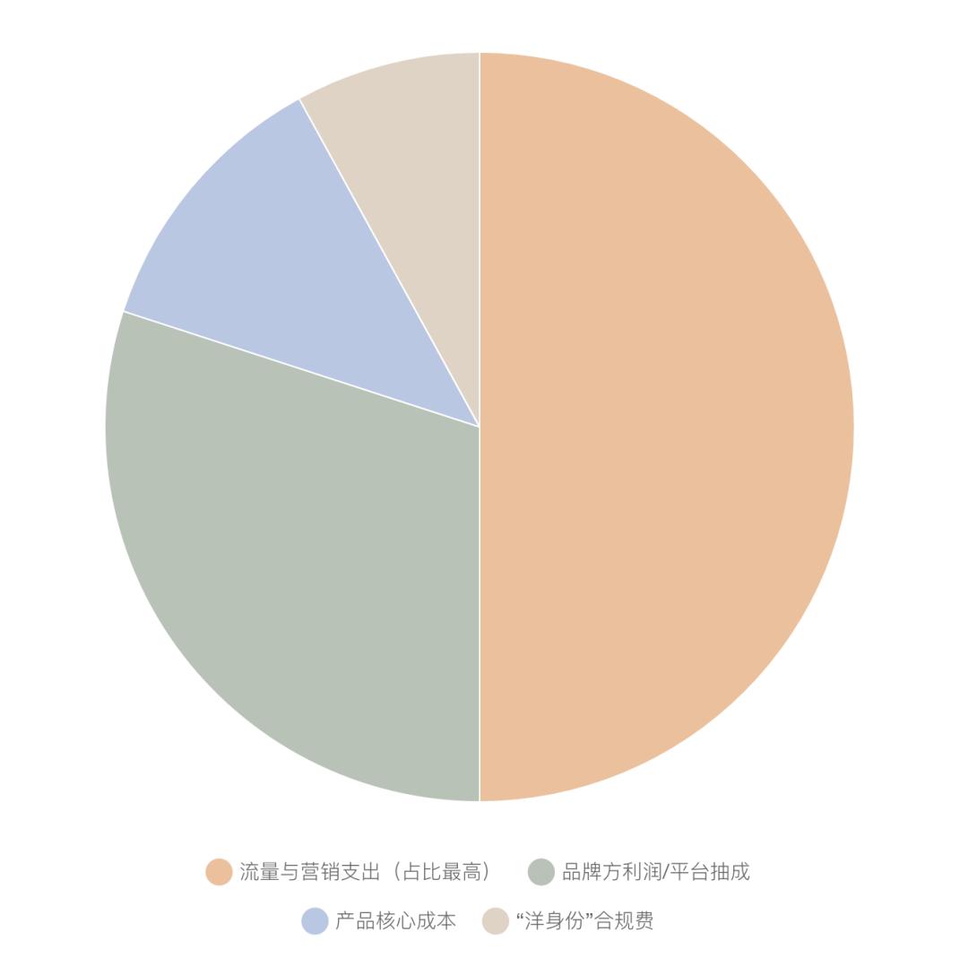 从海外实验室配方、海外壳公司到国内代工、保税仓发货,你以为在为“跨国科研”买单,其实只有相当少的比例直接花在产品上。