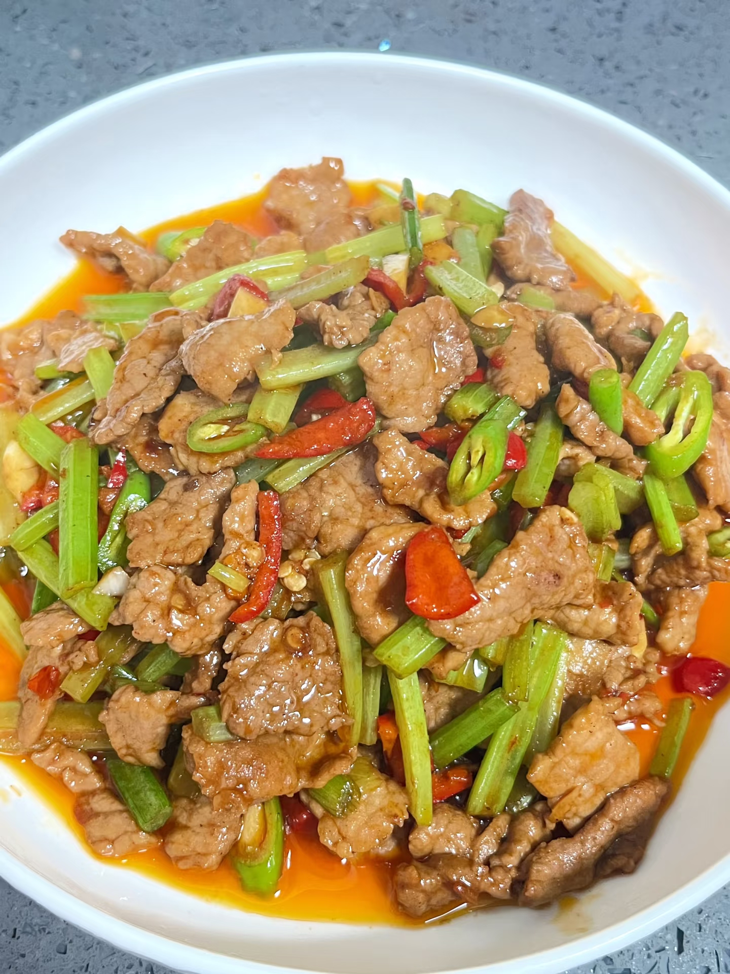 这道菜总让我想起外婆的厨房。那时她总说:"芹菜要抢着吃,凉了就蔫啦!"于是全家人举着筷子严阵以待,像参加一场无声的比赛。如今每次炒这道菜,弟弟还是会故意把肉丝埋在米饭底下,等大家放松警惕时突然发动"偷袭"。