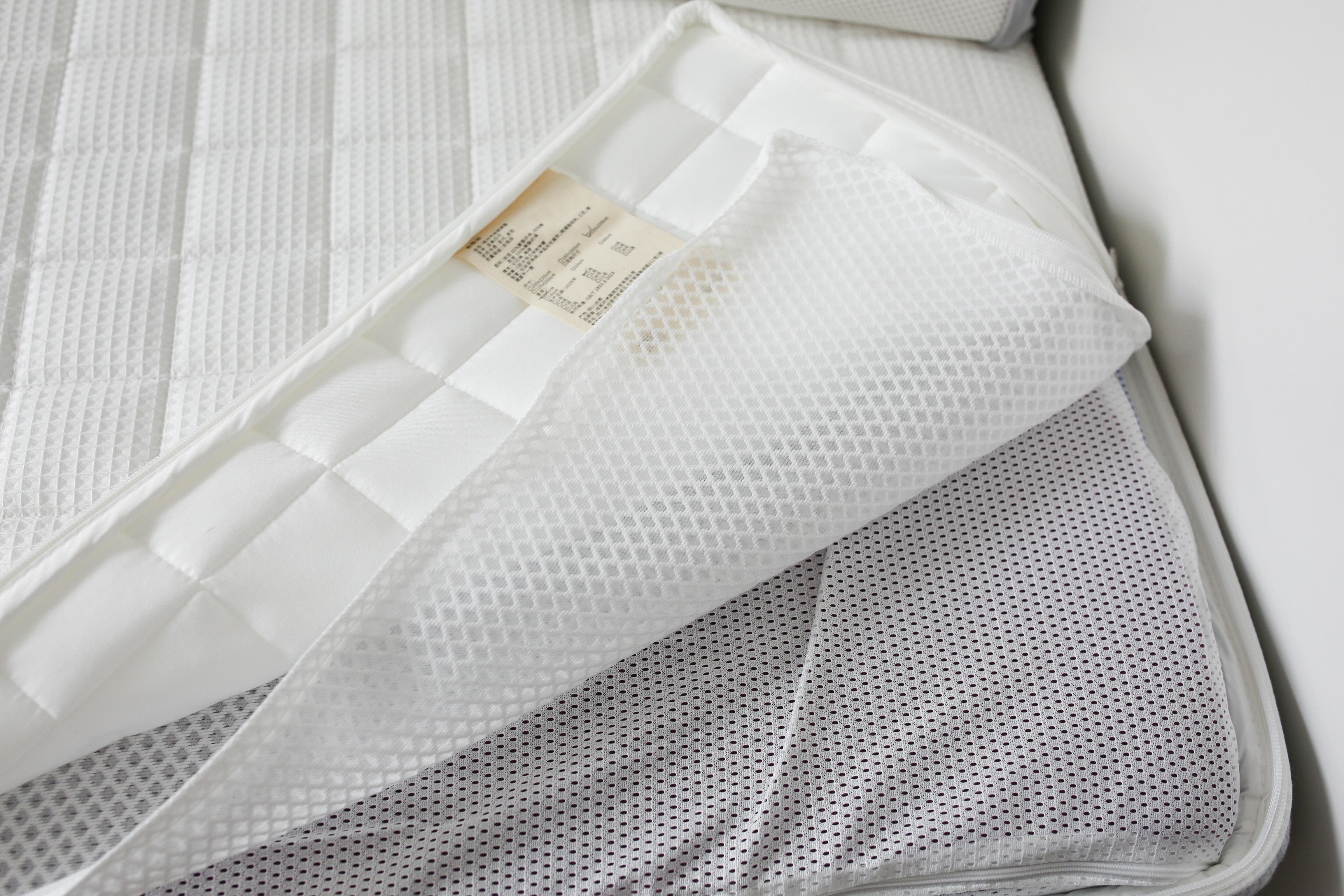 这两个小垫可以根据自己的需求去调换位置。这个设计我觉得特别适合孩子,因为孩子的睡感喜好、体重变化、成长阶段都不是固定不变的。