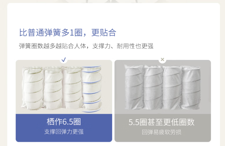 而6.5圈弹簧给我的理解就是,它在支撑和耐用度上会更扎实一些。