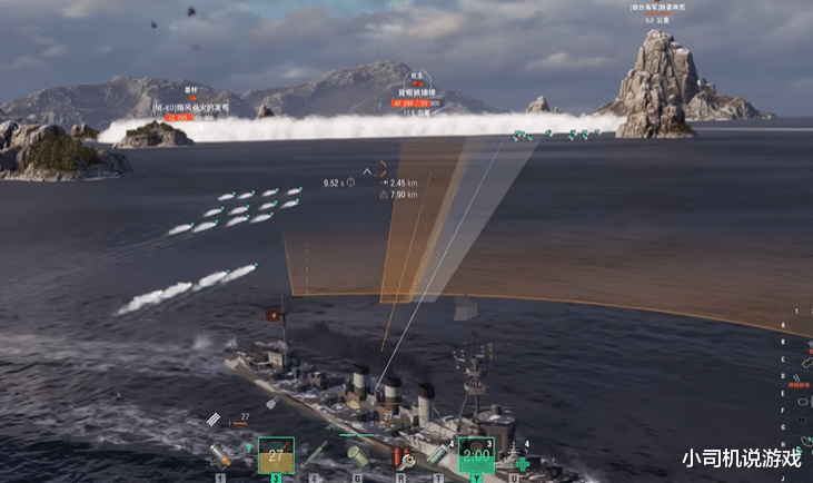 输出能力的过度强大,必定造成其他方面大幅削弱,比如防护。其核心区高度与甲板齐平,且缺乏装甲防护,30mm的甲板甚至无法抵御234mm以上口径火炮的攻击,而且28500血量也低得可怜。它用鱼雷秒人的同时,也背负着被大口径AP弹爆杀的风险,因此技能可以点下1-6背水一战和5-4隐蔽专家。至于航速就不用加了,本身36节航速就很够用,可以轻松绕到敌人侧面放完一排鱼雷,再转身放另一排,看着大量的鱼雷冲向敌人,那种视觉冲击是非常壮观的。