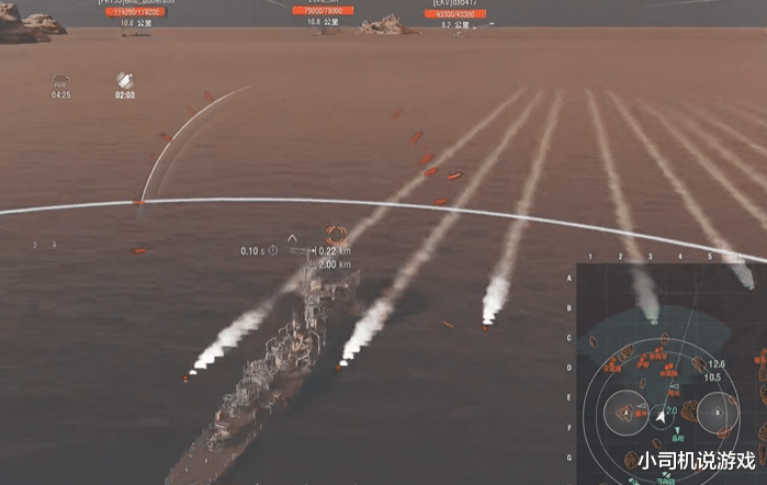 獚的船体两侧各安装了5 座四联装鱼雷发射管,单侧一次可释放20枚鱼雷,两侧合共40枚,恐怖如斯!这样的配置,让它成为了《战舰世界》鱼雷投射量最大的战舰之一。如此大量的鱼雷覆盖海面,让敌人非常难以逃脱这片“死亡区”。
