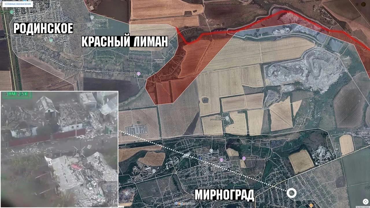 与此同时,俄军已经进入波克罗夫斯克北部的格里希内地区。控制这里意味着可以威胁通往帕夫洛赫拉德的主干公路。昨天俄军还在那儿升起了旗帜,但很快就被乌军的FPV无人机炸毁。不过,俄方步兵仍然留在区域内继续活动。