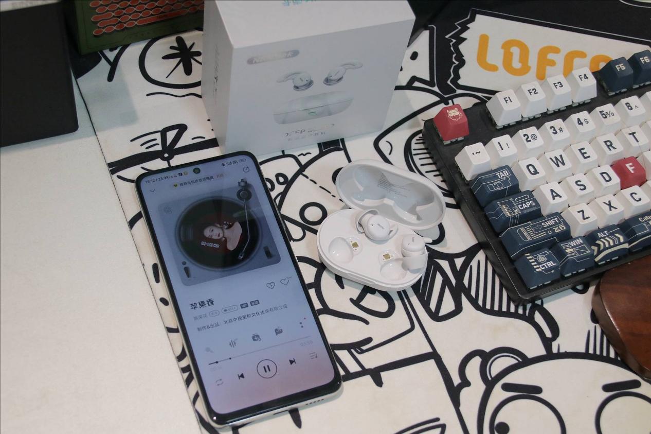 续航与连接同样表现可靠。耳机搭载蓝牙5.4芯片,开盖即连、稳定不易断连,60ms低延迟让日常使用更流畅。续航方面,单次续航约12小时,搭配充电盒可达近60小时,长时间连续夜间佩戴也不用频繁充电,完全满足高频助眠使用需求。