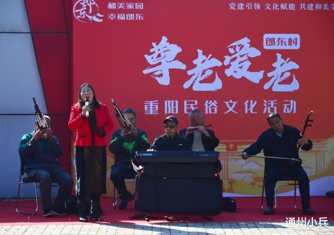 紧接着,活动进入了精彩的民俗演出环节。首先上场的是《郎东大鼓》表演,激昂的节奏和豪迈的气势瞬间点燃了现场的氛围,展现出郎东村的热情与活力。