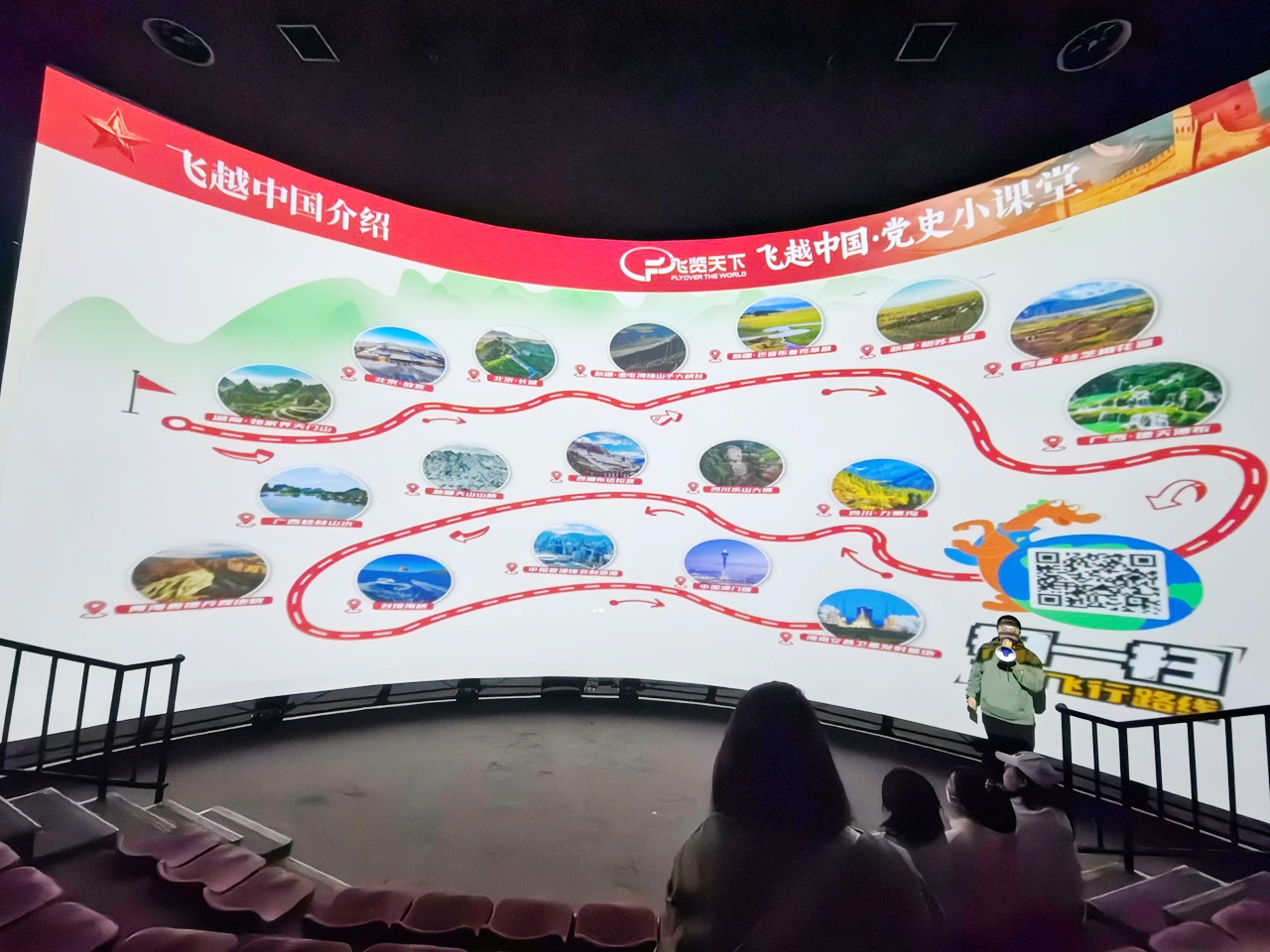 “飞越中国”是游乐园研学的核心体验项目,依托先进的数字光影技术与飞行体感设备,打造全景沉浸式飞行体验,打破空间限制,让参与者以“飞鸟视角”俯瞰祖国山河。该项目并非简单的影像播放,而是融合了球幕投影、动感座椅、多感官特效等多种技术,构建出逼真的飞行场景。