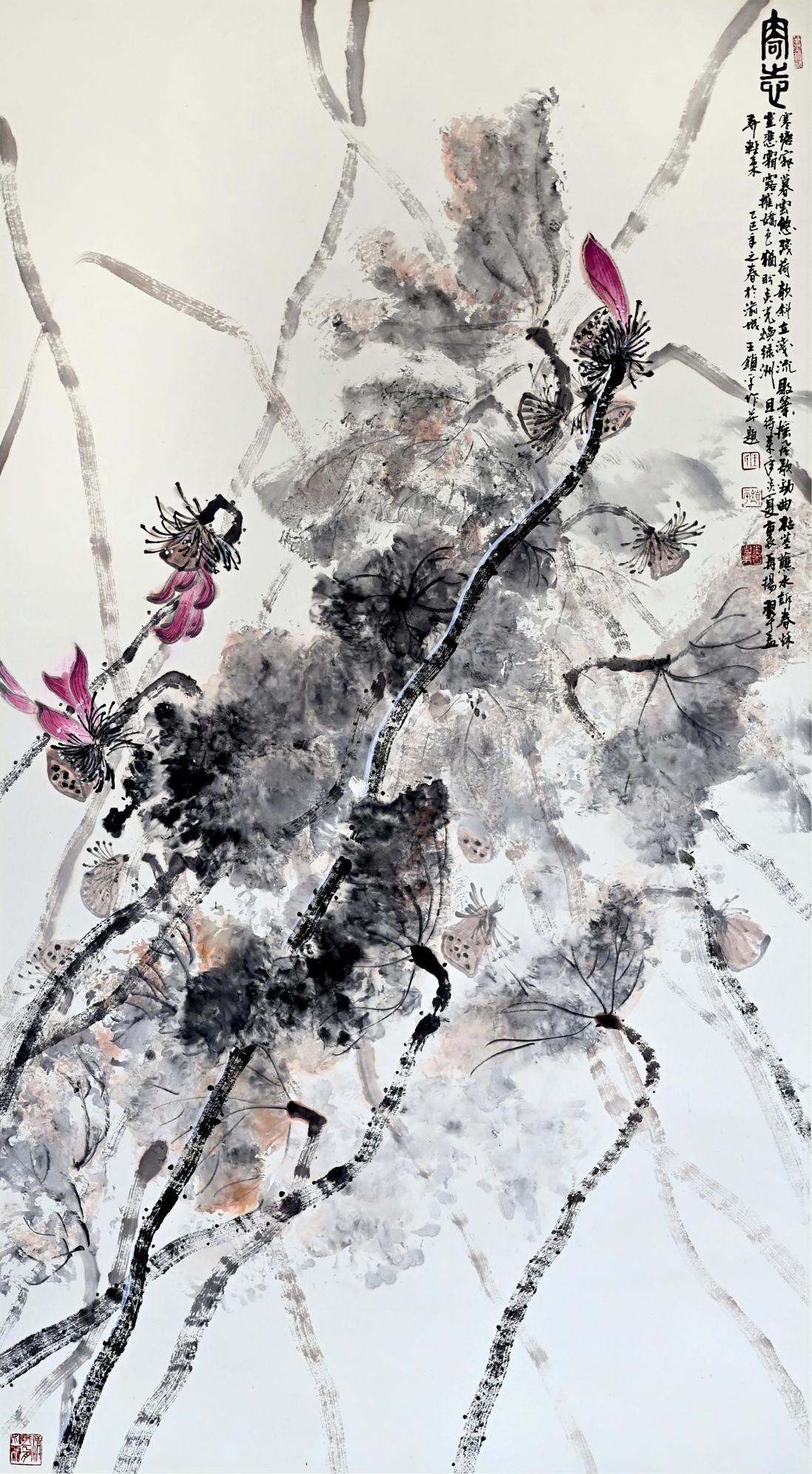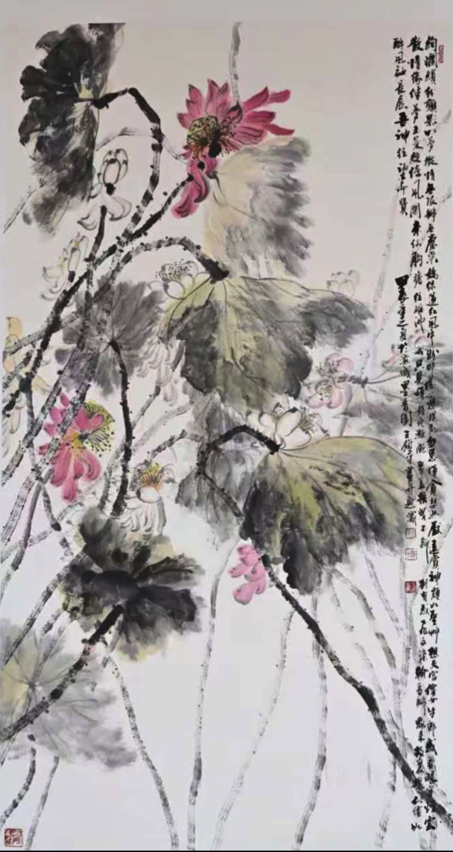 主要代表作:《毛泽东诗词长卷书法》、《中国75周年国庆献礼诗词书法》、《黄山胜景题画诗书法》、《背影》、《黄山云海图》、《盘江大桥》、《黄山梦幻图》、《黄山日出图》、《静观风云图》、《金佛夕照图》、《潼南精神》等经典名作。部分作品版权被人民大会堂、中南海等中央机构广泛应用于国宾礼。“荷”为贵系列作品巡展150多个国家,被全球权威媒体誉为世界艺术殿堂顶级大师,入选全球百强艺术家榜、中国最具收藏价值艺术家榜、荣获国家功勋模范艺术家称号、中国十大杰出艺术人物、世界华人十大杰出艺术家、中国文化走向世界国家形象人物、载入《世界美术教育史》的中国当代唯一巨匠级艺术家。作品被人民大会堂、国家博物馆、中国美术馆、罗浮宫、天安门、英国皇家艺术学院等机构永久珍藏,并获得中华人民共和国ISC2000艺术品司法权威评估及国家信息中心艺术品存证备案。2024年12月7日受邀参加中央军委全球武官团年度文化外交国宴、2024年被联合国科教文、意大利总理办公室、意大利文化部、佛罗伦萨美术学院、罗马美术学院、都灵美术学院及中国八大美院联合邀请为:中意文化艺术交流展中方评委。人民日报《环球人物》、中央电视台、《中华英才》杂志、人民代表报、中国国际教育电视台、中华网、央视网、中国新闻联播网、中国新闻网、美国时代周刊、纽约时报、英国卫报、阿联酋国家新闻等数万家全球权威媒体发表名家专栏作品及宣传报道其杰出成就。