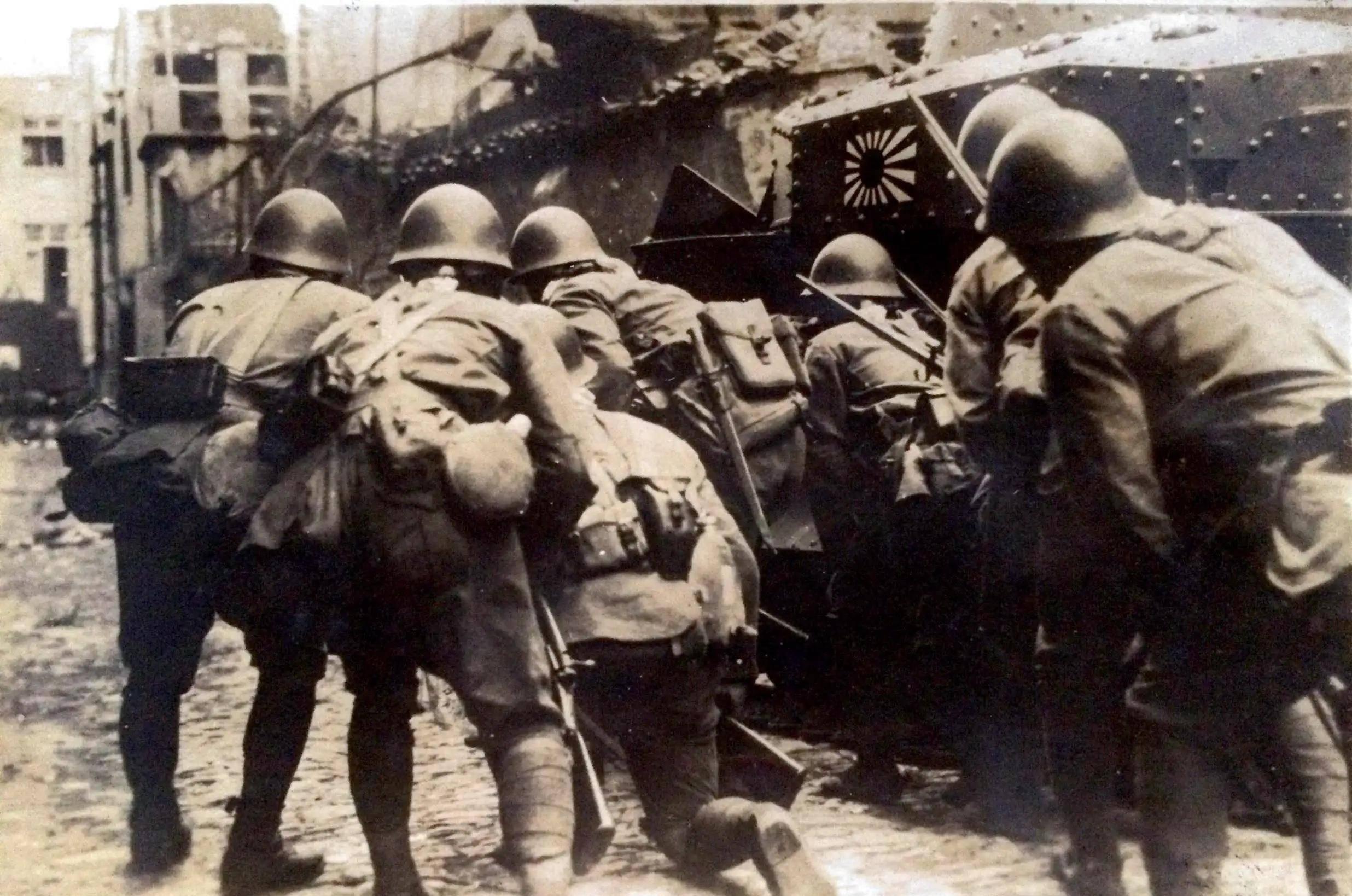 在苏州河周家桥一带,他的部队和日军血战两周,日军用橡皮艇渡河,他就带人去炸桥。日军躲在岸边的储煤洞里,他让人往洞里扔浸了汽油的棉花包,点火烧。