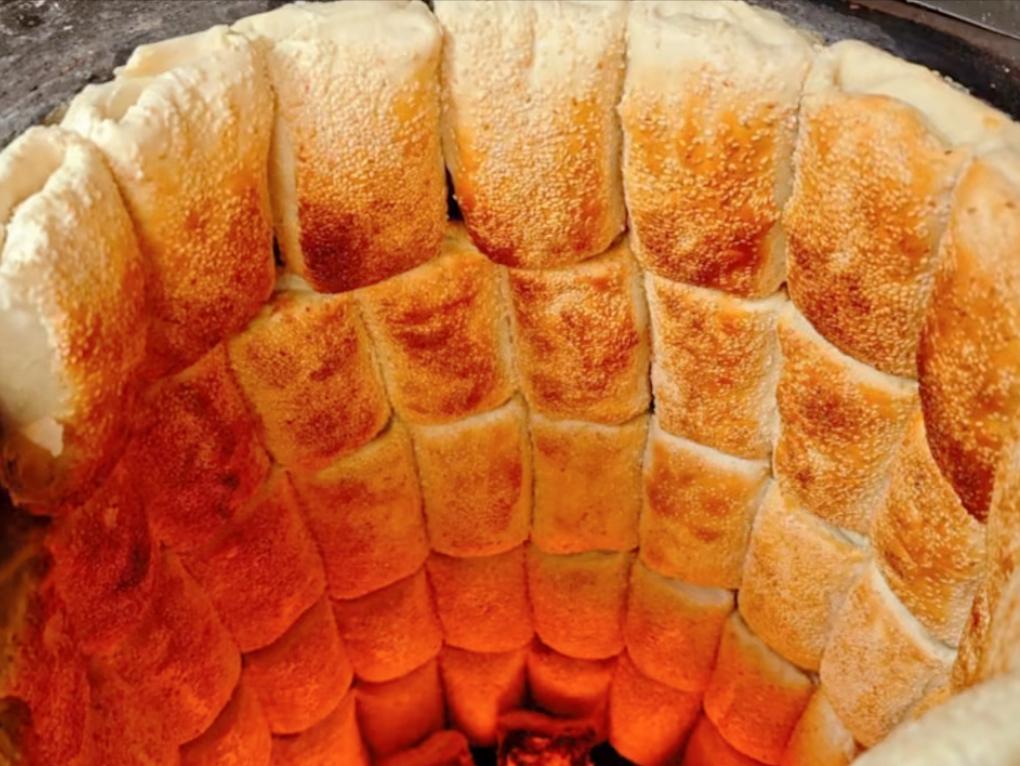 做好的缸炉烧饼,色泽金黄,吃起来香脆可口,如果再夹上驴肉、卤肉,就更过瘾了!