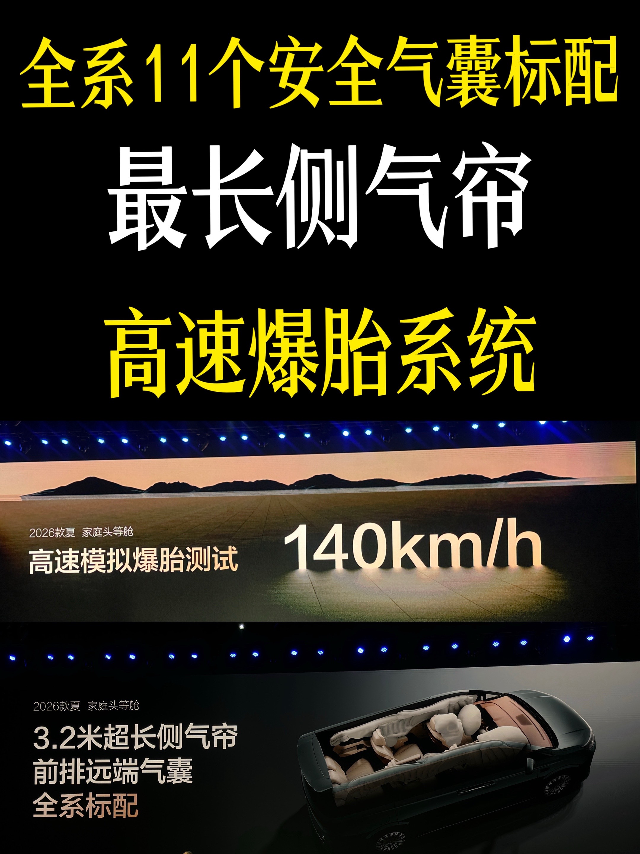 前排有加热、通风、记忆、按摩功能,头枕音响功能;二排独立座椅宽大舒适,加热、通风、记忆、按摩和头枕音响,还有腿托和小桌板。