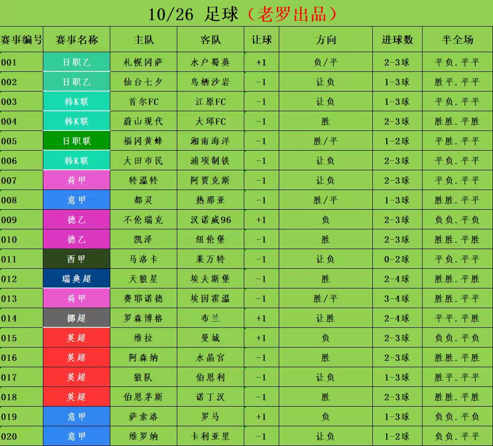 从目前市场数据的整体调整来看,基本上都是对阿森纳给出了充足的支持力度,只是在能否击穿一球底线上有一定的分歧,结合阿森纳本赛季的防守强度,以及水晶宫近期防守端漏洞还有以往两队的交战上来看,综合考虑,老罗看好本场阿森纳取胜,大胜的概率会更大。