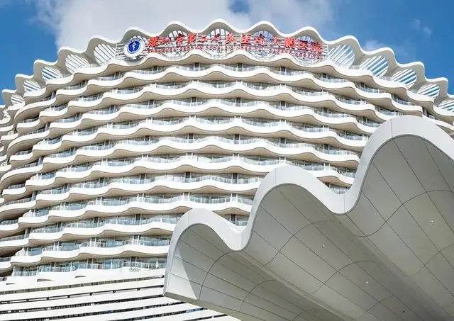 建筑群包含住院楼、康复中心、门诊医技楼、行政楼等多功能区域,但最引人注目的是其与山海对话的设计哲学。