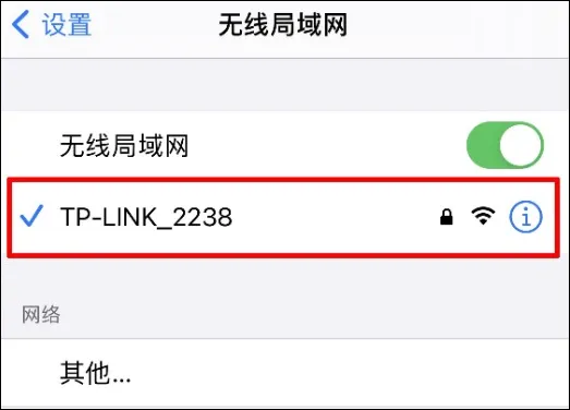 二.让你的手机连接到步骤1查看到的默认无线名称,小编是TP-Link路由器(Wi-Fi名字是TP-LINK_XXXXXX)。