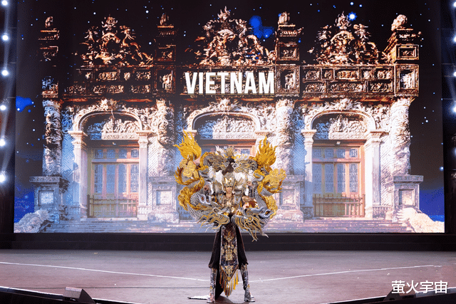 据报道,这件“石龙花赫” 服装重 50 斤,其灵感源自宁平省华闾区宁文石雕工艺村的精美石雕。该服装重现了雄伟的龙的形象,龙是力量的象征,且每一个细节都经过精心设计。范俊玉光是穿戴这件服饰就要花费两个小时。