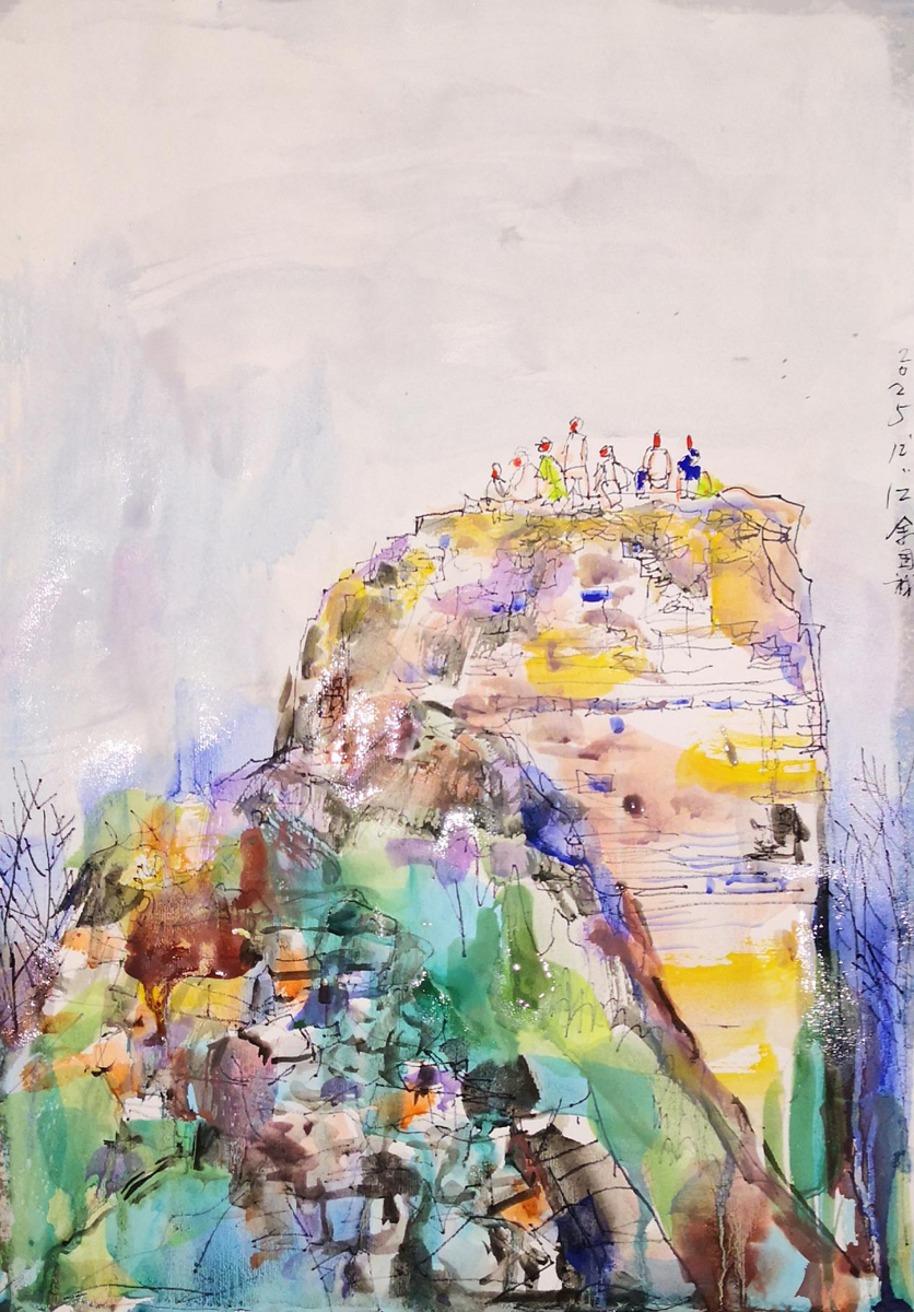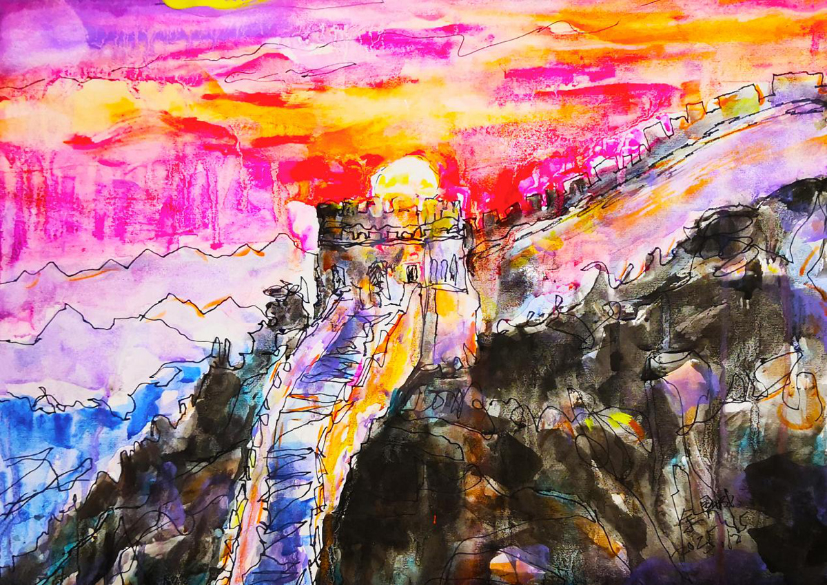 观余先生之长城画作,色彩如诗,灵动跳跃。那绚烂的色彩,似春日繁花绽放,又似秋日枫叶如火,巧妙地交织在一起,勾勒出长城的雄浑与壮美。或浓墨重彩,如激昂的乐章,奏响长城的磅礴气势;或轻描淡写,似悠扬的小调,诉说着长城的温婉柔情。每一抹色彩,都是他对长城深情的表达;每一处笔触,都是他心灵深处的悸动。