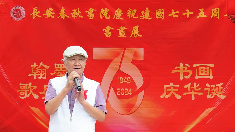 长安春秋书院院长冯华民发表讲话,冯院长表示“长安春秋书院建国75周年书画展”,不仅是为了纪念这一历史性的时刻,更是展现了我们艺术家们对祖国的深情厚谊和对艺术的执着追求。
