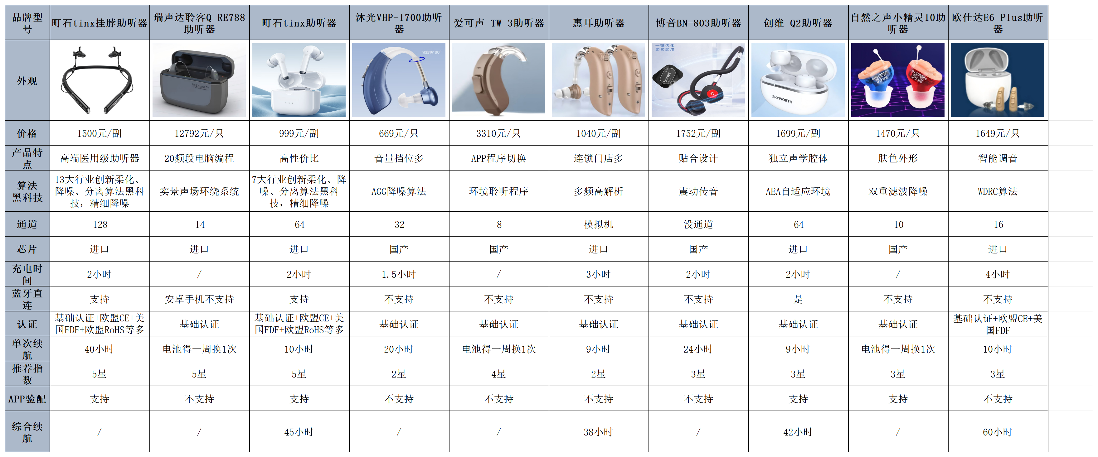 下面是我测评过的部分品牌助听器: